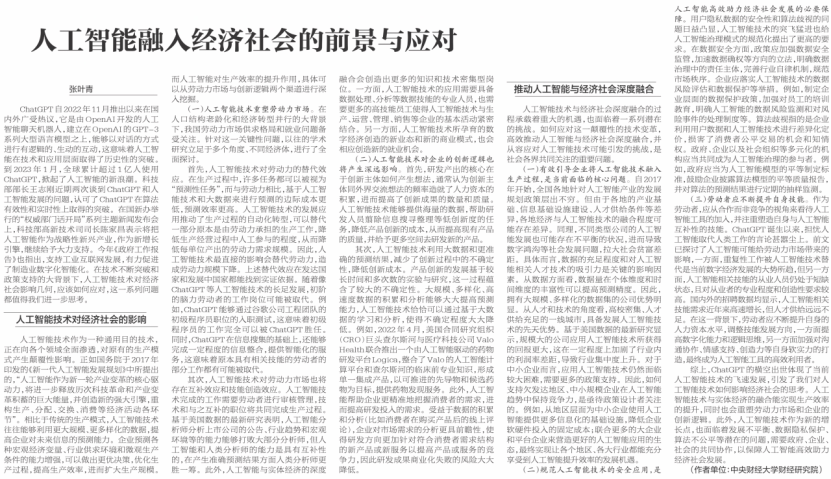 我院助理教授张叶青老师在2023年3月20日的《金融时报》上发表文章“人工智能融入经济社会的前景与应对”。