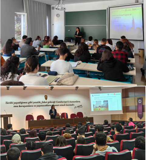 交流期间,许寅硕副研究员为安纳托鲁大学商业管理学院本科生作了题为《绿色金融的全球及中国进展》的讲座,引发了到场师生的热烈讨论,并就土耳其开展绿色金融的场景展开讨论。许寅硕副研究员还参加了商业管理学院硕士和博士生的每周学术论坛,就可持续金融及其他相关领域进行了研讨和交流。