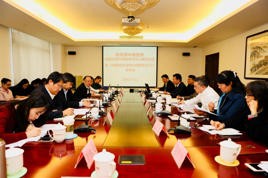 2018112日商务部中商智库《中国城市消费升级报告2018》在京发布,会议由中国商务出版社社长、商务部中商智库董事长郭周明主持,商务部研究院党委副书记于广生出席会议并致辞,报告撰写组对《中国城市消费升级报告2018》进行了发布。参加会议的有国家统计局原局长李德水、对外经济贸易大学副校长赵忠秀、国家市场监管总局发展研究中心副主任冯军、对外经济贸易大学国际经济研究院副院长庄芮、中国社科院世界经济与政治研究所经济发展研究室主任徐奇渊等20余位专家参会。