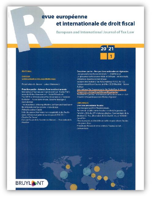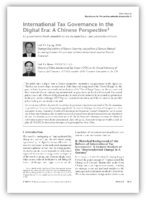 近日,我校pc28预测在线预测神测网咪牌副院长、国际税务研究中心主任曹明星老师与厦门大学邓力平教授在《European and International Journal of Tax Law(欧洲与国际税法季刊)》联合发表专文“International Tax Governance in the Digital Era: A Chinese Perspective(数字时代国际税收治理的中国视角)” ,就杂志主题与国际税收专家纵论数字经济与百年变局中的国际税收全球治理改革问题。