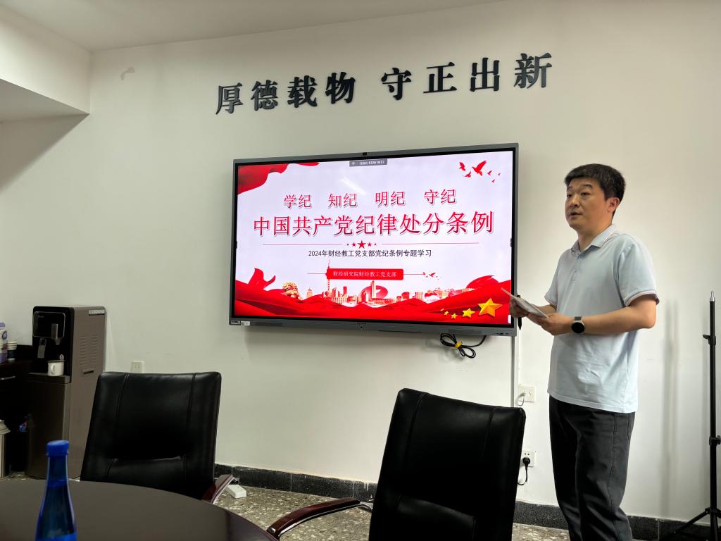 图1 财经教工党支部书记杜纯布老师领学《中国共产党纪律处分条例》